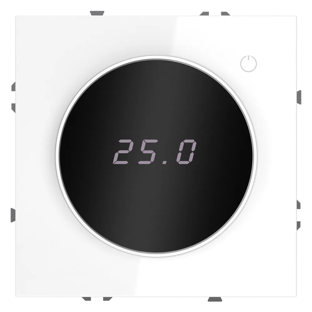 Место установки. Терморегуляторы Voltum предназначены для регулирования температуры электрического теплого пола. Актуальны как в городских квартирах, так и в загородных дачных домах без центрального отопления. Корпус. Дизайн терморегуляторов Voltum сочетается со стилем остальных электрических устройств компании. Они совместимы со всеми рамками. Материал внешних декоративных элементов — поликарбонат. Конструктивные особенности. Терморегуляторы работают с любыми типами теплых полов и рассчитаны на нагрузку до 3500 Вт. Устройства оснащены светодиодной индикацией режима и дисплеем, на котором отображается температура поверхности пола. Красный индикатор — «подача питания на нагревательный кабель (идет процесс нагрева)», отсутствие индикации — «заданная температура достигнута». В течение 15 минут после нагрева терморегулятор переходит в интеллектуальный «спящий режим», уменьшая яркость подсветки цифр и сокращая энергопотребление. Регулировка осуществляется вращением панели управления. Терморегулятор поставляется в комплекте с механизмом из пластиковой накладки и датчиком температуры.
