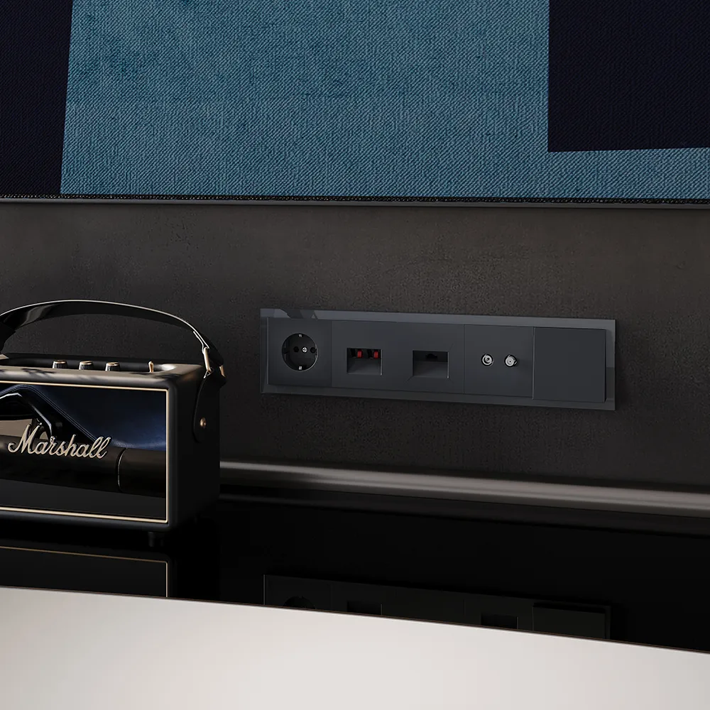 Розетка полностью совместима с пластиковыми и стеклянными рамками той же серии и гармонично вписывается в любую композицию из выключателей, диммеров и других устройств VOLTUM S70.